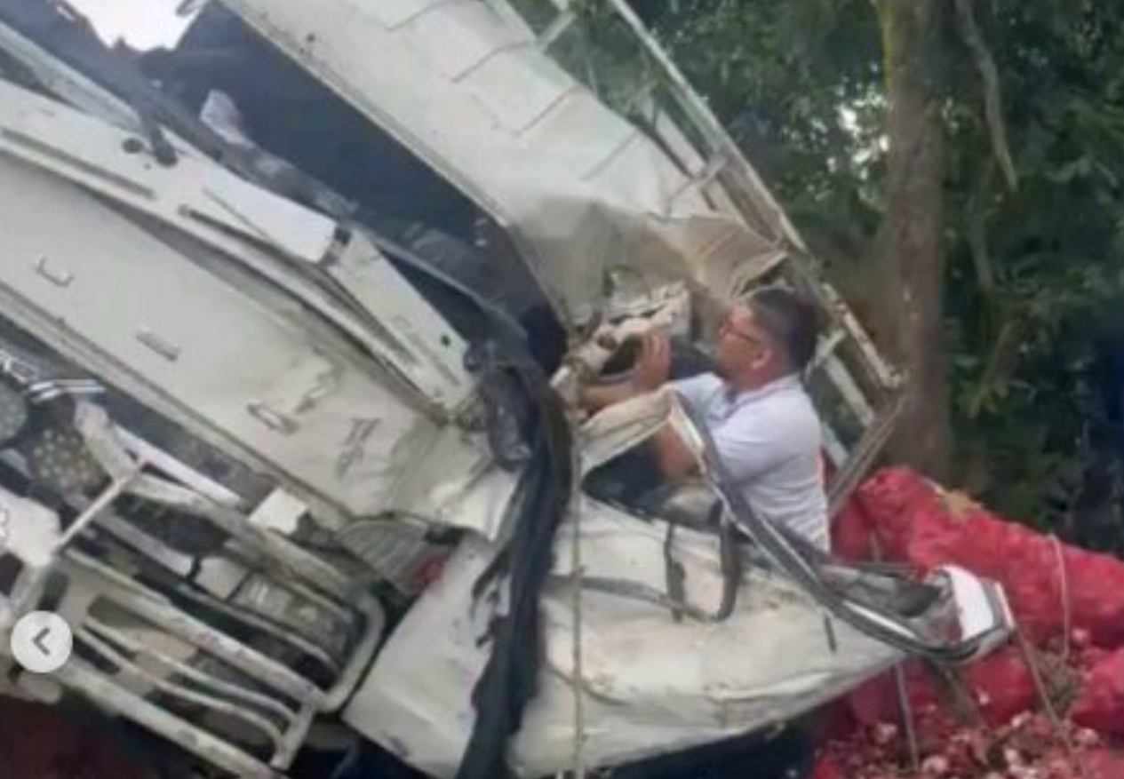 El siniestro involucró un camión cargado que sufrió un fuerte impacto, resultando con severos daños. De manera preliminar, se informó que el conductor quedó atrapado dentro de la cabina tras el accidente.