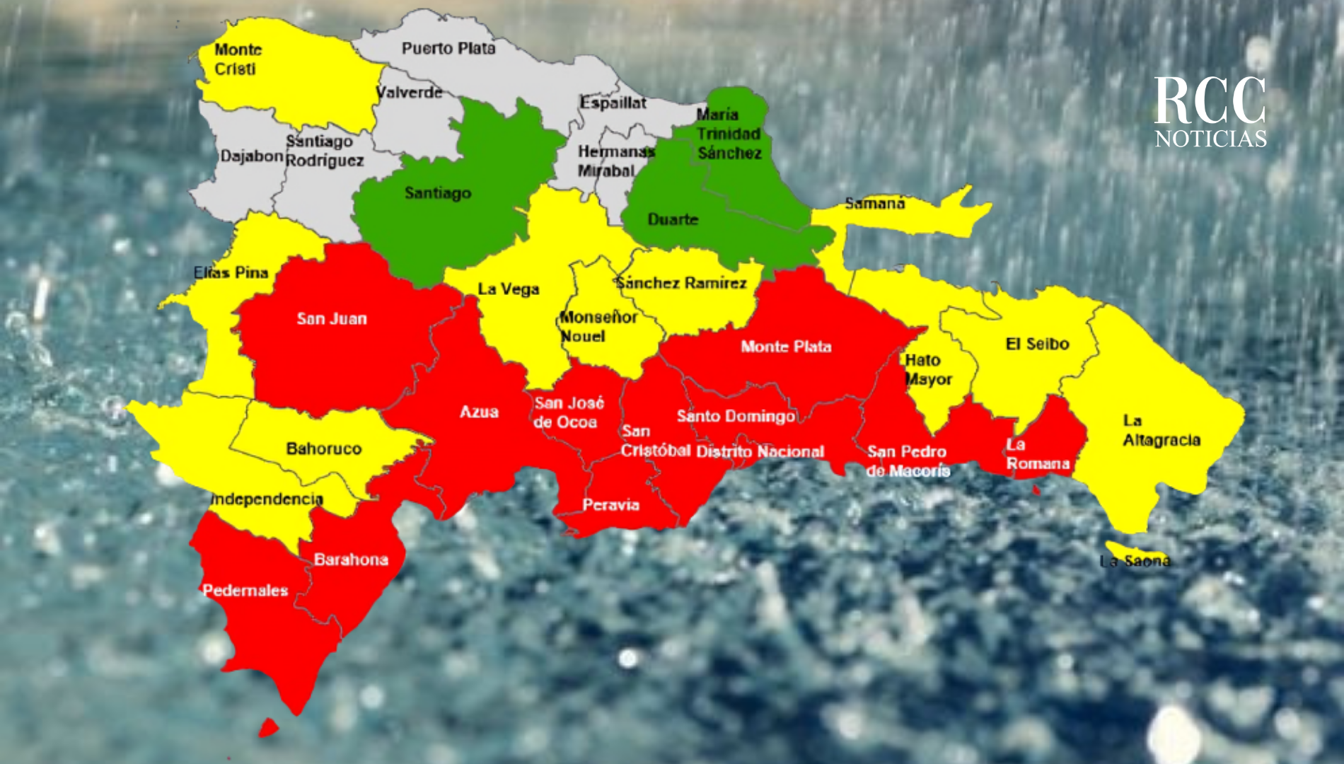 Méndez García detalló que siguen en alerta amarilla las provincias La Vega, Hato Mayor, El Seibo, Samaná, Monseñor Nouel, Sánchez Ramírez, La Altagracia, Elías Piña, Independencia y Bahoruco.