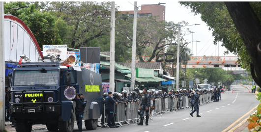 La presencia policial se extiende hacia los alrededores del Centro Olímpico Juan Pablo Duarte, el sector Miraflores y otras vías cercanas.