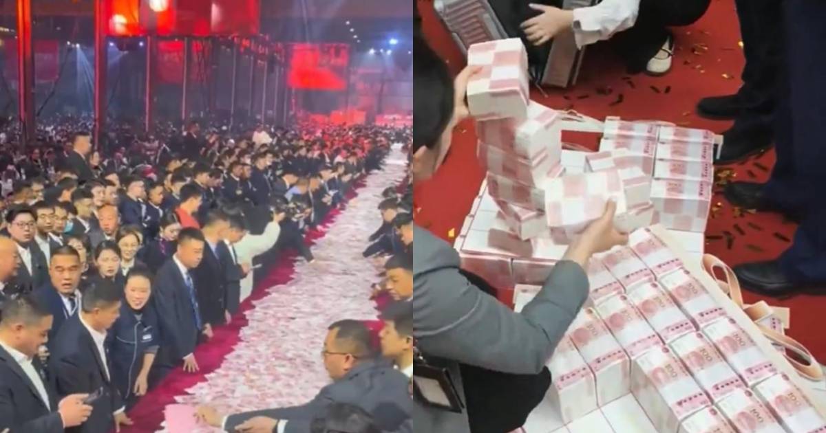 Un empresario chino repartió 26 millones de dólares en efectivo entre sus empleados durante la fiesta anual de fin de año de su compañía.