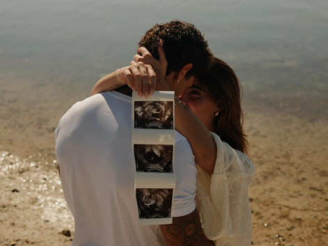 La noticia fue compartida con una serie de fotografías en las que ambos aparecen abrazados frente al mar, sosteniendo una ecografía. La imagen estuvo acompañada de un breve mensaje: “Mitad tuya, mitad mía. Nuestro”, frase que generó miles de reacciones entre sus seguidores.