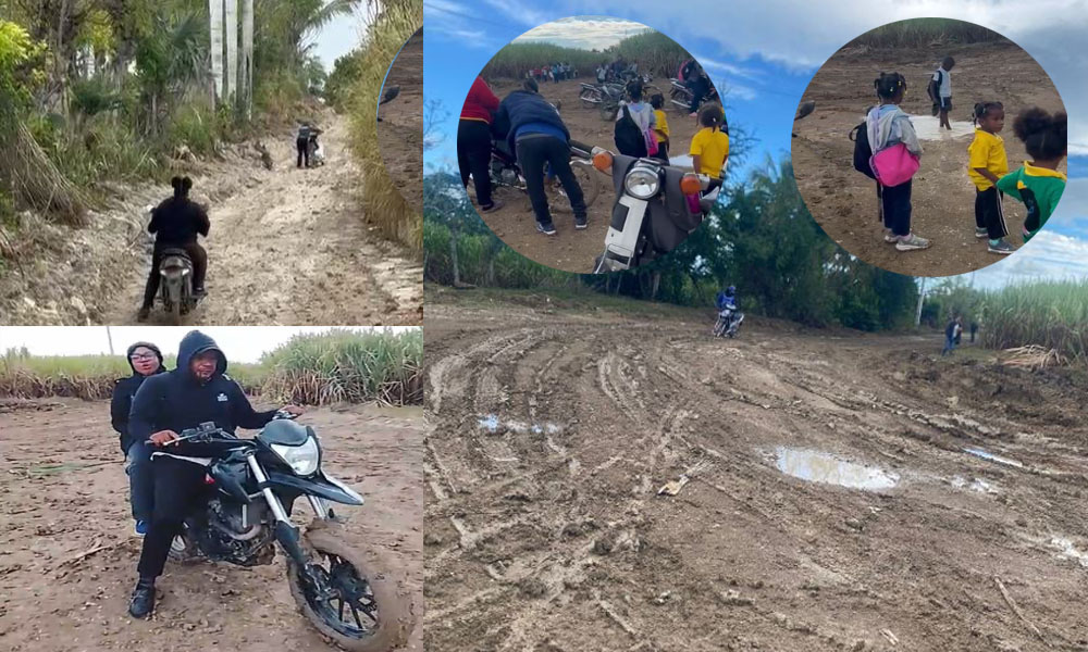 En las imágenes se observa a los docentes desplazándose con dificultad en motocicletas, sorteando tramos completamente inundados y cubiertos de lodo. Según explicaron, el trayecto representa un riesgo constante, tanto para el personal docente como para los alumnos, especialmente durante los días de lluvia.